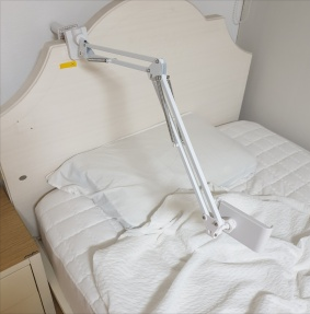 꽉 고정하려고 했더니 지지하는 플라스틱에 벌써 상처가 나고 고정이 되진 않아요. 다른건 다 괜찮은데 그게 좀 걸립니다. 불편한건 없으니까 계속 쓰려구요. 진짜 편안하고 좋습니다. 매일 자바라 침대 거치대만 썼었는데 고정하는 부분 때문에 침대에 상처만 나고 1도 튼튼하지 않더라구요. 진작에 스탠드 거치래를 찾아보고 쓸걸 그랬어요. 침대에 상처날 일 없어 걱정도 안되고 여기저기 옮겨 다녀도 되니까 너무 좋아요.