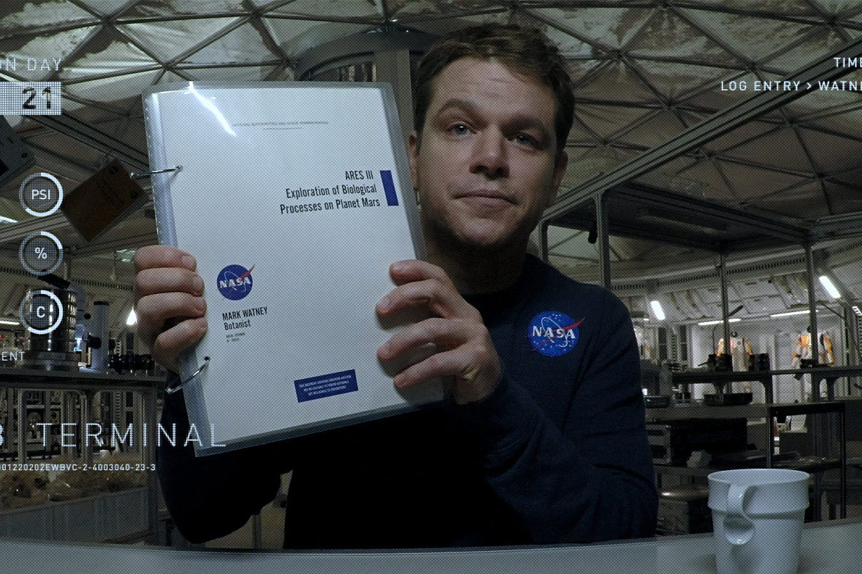 폭풍이 지나간 후 깨어난 와트니는 화성에 홀로 남겨졌음을 깨닫고, 제한된 자원으로 생존 계획을 세우기 시작합니다.
